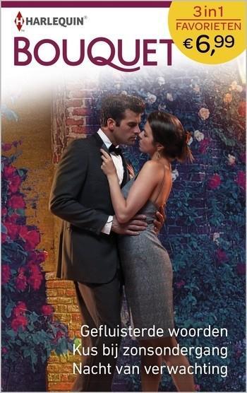 (1) GEFLUISTERDE WOORDEN - Carole Mortimer Om de mooie Jaz te redden moet Beau met haar trouwen... Want door haar moeders roerige verleden wordt ze in Aberton met de nek aangekeken. Dat kan Beau, die haar heeft ingehuurd als hovenier, niet toelaten. Om haar te beschermen verlooft hij zich met haar - met wel héél onverwachte gevolgen... (2) KUS BIJ ZONSONDERGANG - Sandra Field Rafe kent Fiona al zijn hele leven... Van hartstocht tussen hen is nooit sprake geweest, dus Rafes wens om een rustig, voorspelbaar leventje met zijn aanstaande te leiden, lijkt in vervulling te gaan. Tot hij haar kust en er een schitterend vuurwerk in zijn binnenste losbarst! Is dit de Fiona uit zijn jeugd? (3) NACHT VAN VERWACHTING - Trish Morey Damien móét haar vinden... Want de mysterieuze dame die hij tijdens een gemaskerd bal heeft ontmoet - en met wie hij een wilde nacht heeft beleefd - is zijn droomvrouw. Zij is in alles de tegenpool van zijn pr-medewerkster Philly, dus waarom beweert die dan dat dat ze een kind van hem verwacht?