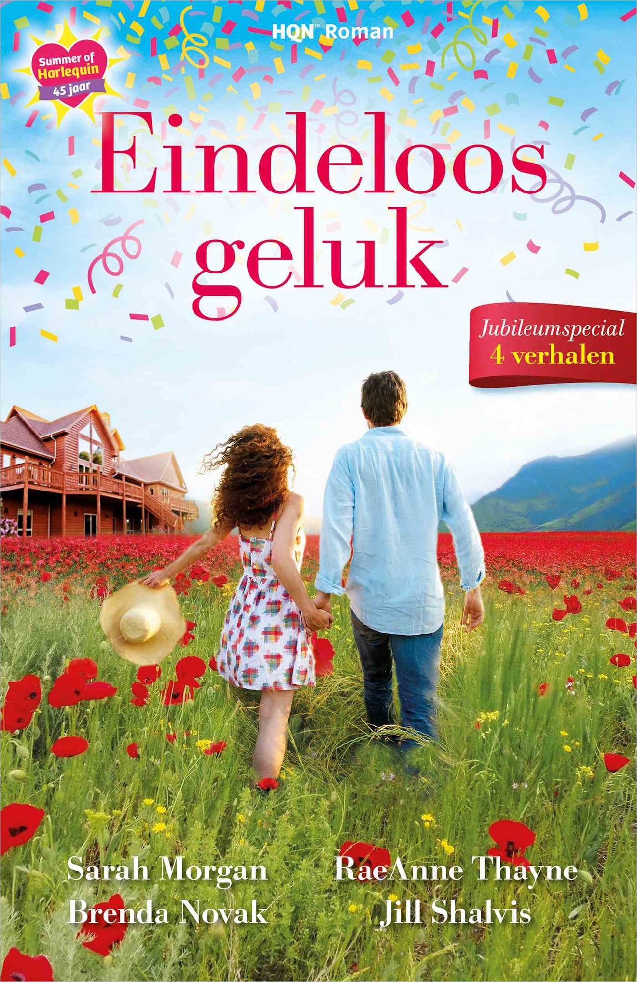 Harlequin bestaat 45 jaar! Om dat te vieren, hebben we een heerlijke bundel voor u samengesteld met verhalen van vier van onze favoriete auteurs. Sarah Morgan neemt ons mee naar New York, met het verhaal Aanzoek bij Tiffany’s. Wanneer serveerster Matilda de razend knappe miljonair Chase ontmoet, lijkt ze in een sprookje te zijn beland. Zal een date bij de beroemde juwelier Tiffany’s haar dromen doen uitkomen? Met Brenda Novak gaan we naar Whiskey Creek. In Verbonden harten trouwt de zus van Olivia met Kyle, háár ex! Gelukkig kan ze met haar verdriet bij Kyles stiefbroer, Brandon, terecht. Of wil ze stiekem toch méér van hem dan een schouder om op uit te huilen? RaeAnne Thayne zoekt tropische sferen op in Zonsopgang in het paradijs. Megan reist af naar Hawaï om het tweede huwelijk van haar ex bij te wonen. Even slikken, maar ze doet het voor haar dochtertjes. Het wordt onverwacht spannend als ze de sexy Shane ontmoet... En Jill Shalvis sluit af met een compleet nieuw verhaal: Weerzien in Wildstone. Daarin is Tilly erg zenuwachtig op haar eerste dag als kunstdocent. Dat wordt niet beter als ze in de les ineens in een paar bekende, vurige ogen kijkt…